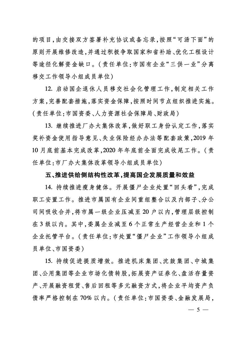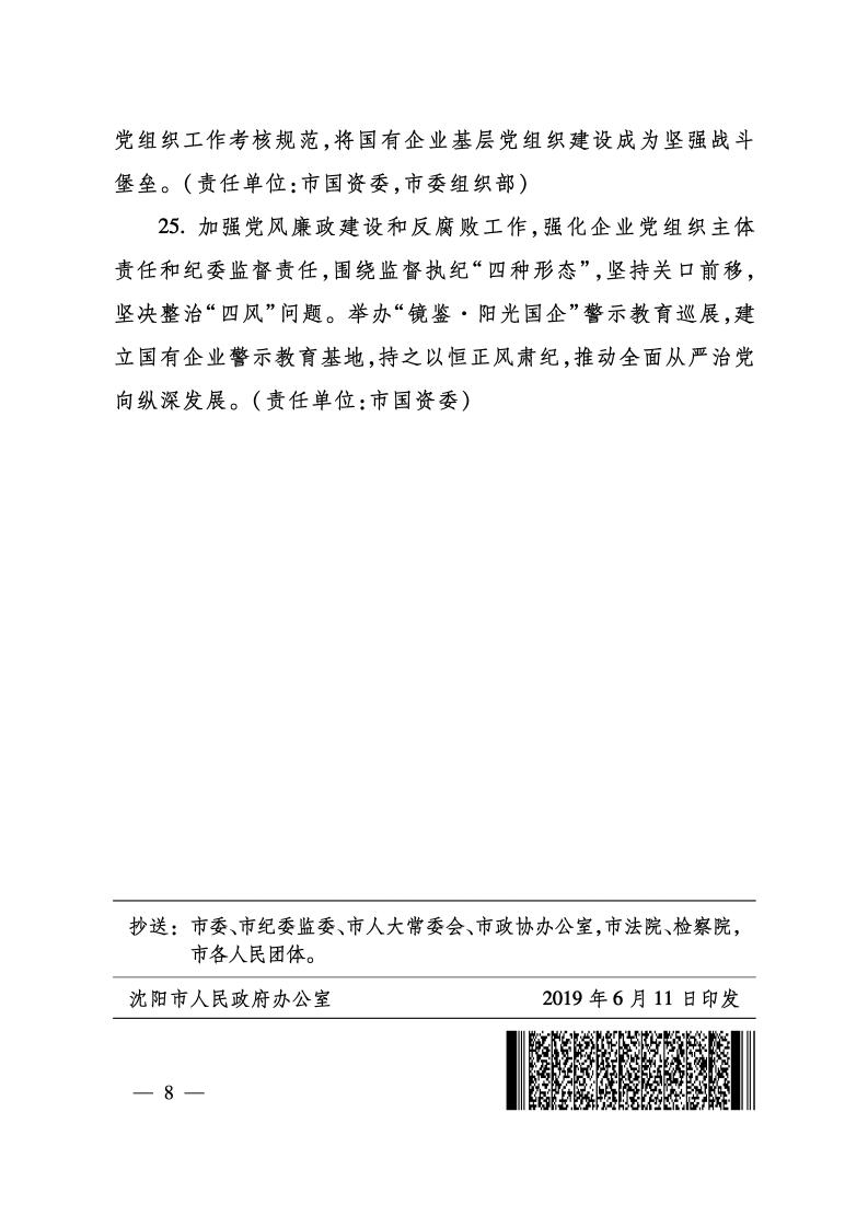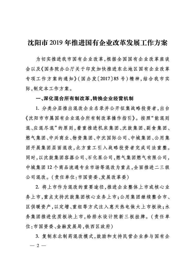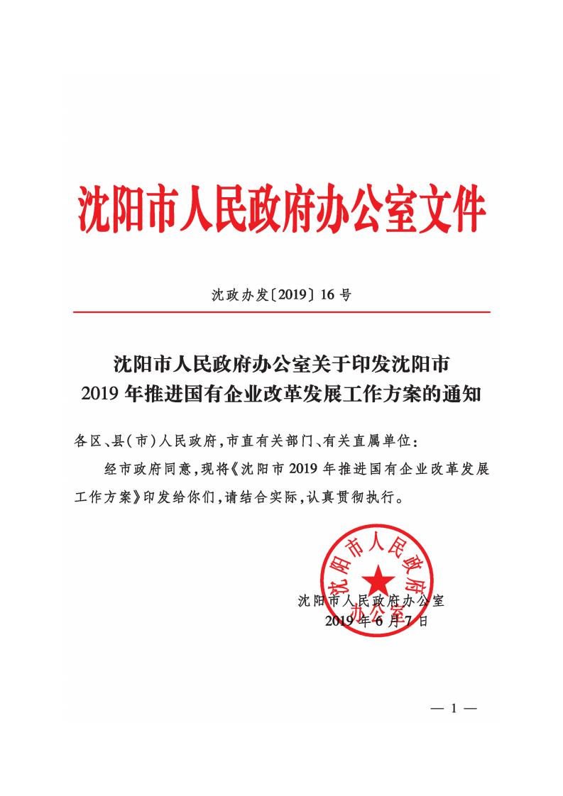 沈陽市人民政府辦公室關于印發(fā)沈陽市2019年推進國有企業(yè)改革發(fā)展工作方案的通知