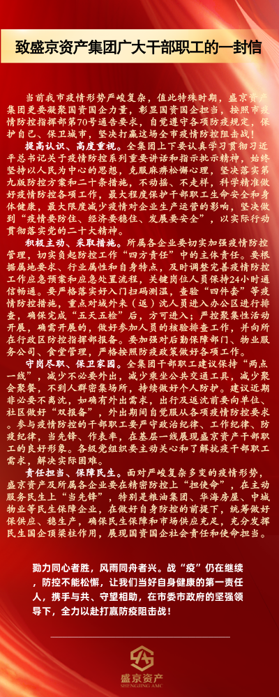 致盛京資產(chǎn)集團(tuán)廣大干部職工的一封信